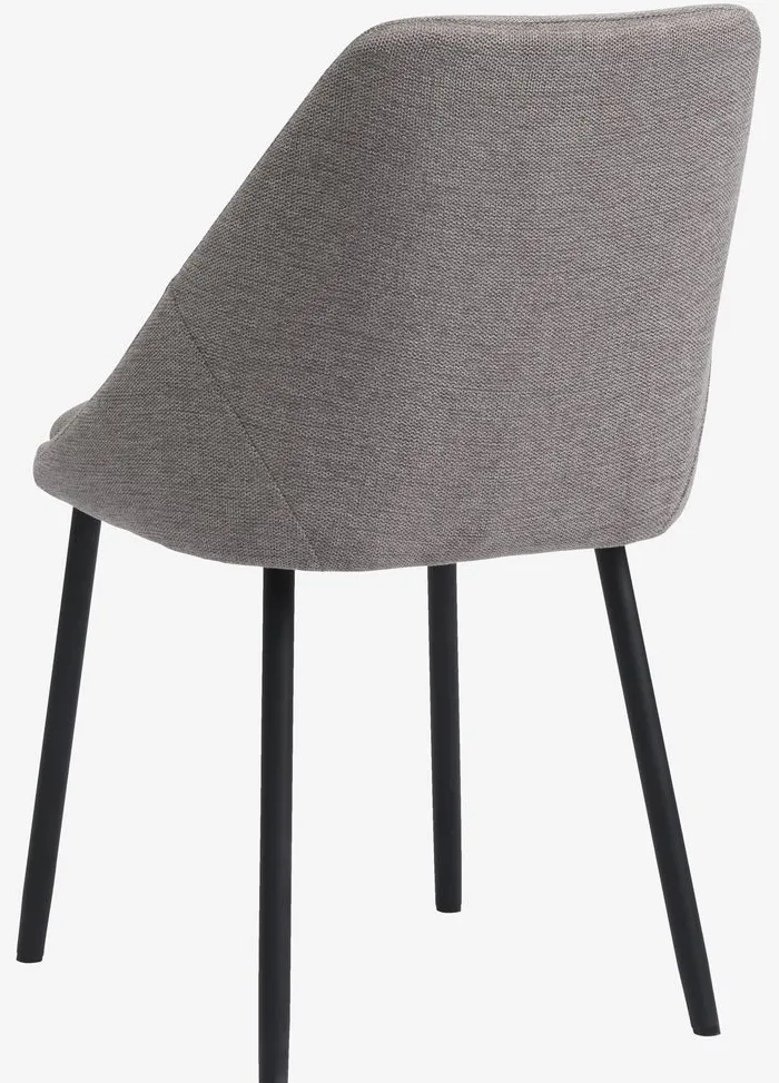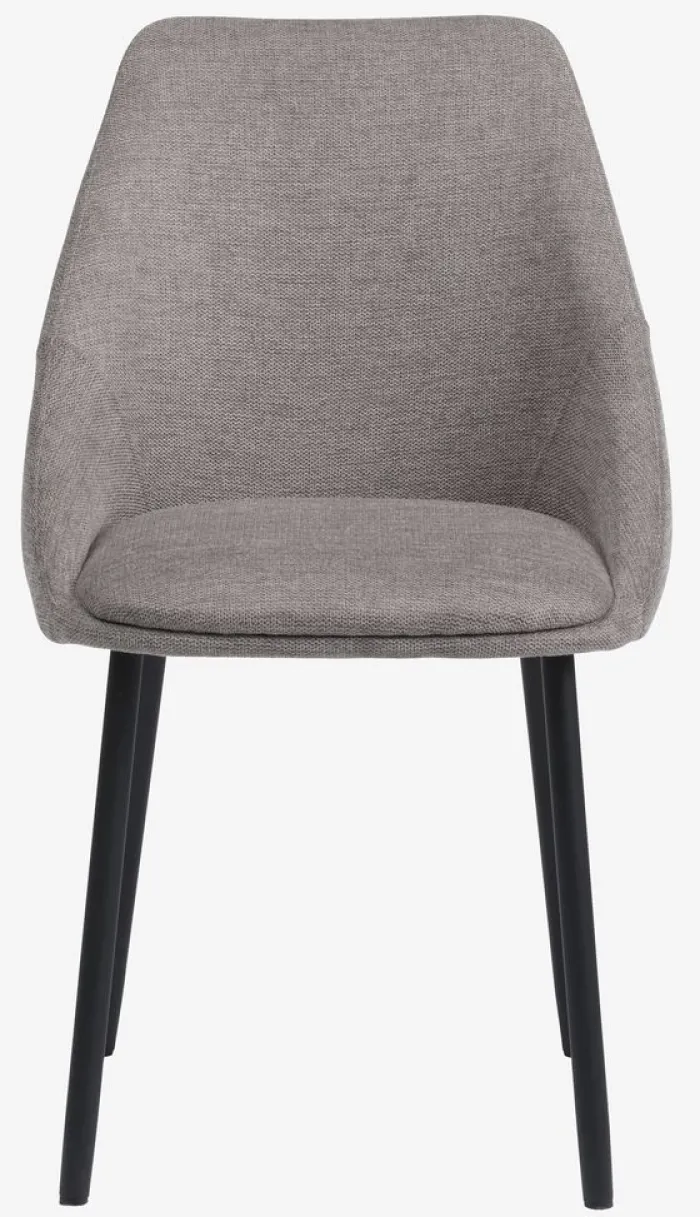 Spisebordsstol med polstret sæde og ryglæn i sandfarvet stof. Sorte ben i stål.