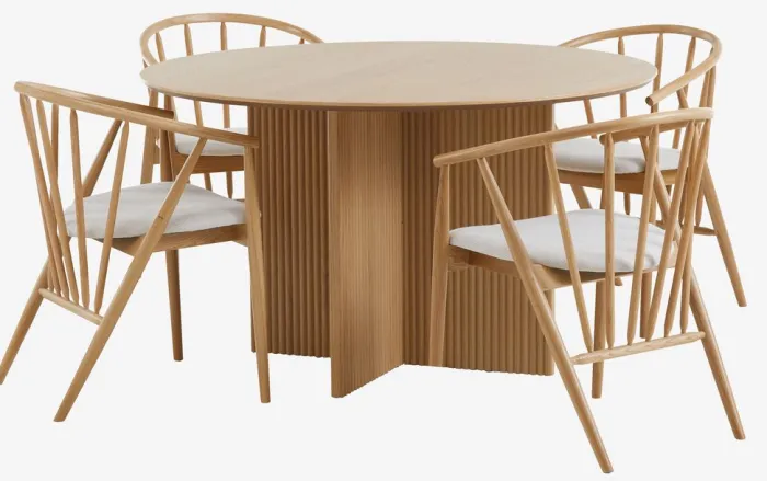 VESTERBORG + ARNBORG Spisebordssæt|VESTERBORG Ø130 bord eg + 4 ARNBORG stole eg