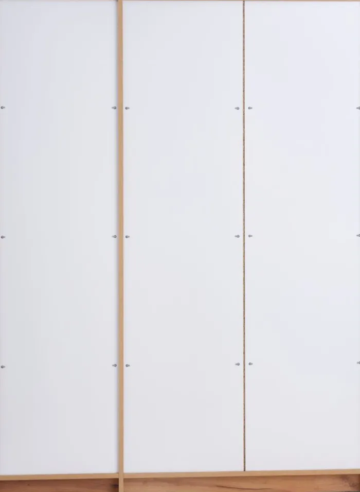 Kunstfiner. Skabets indretning: 3 bøjlestænger. B150 x H200 x D60 cm