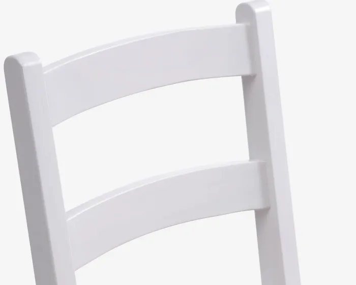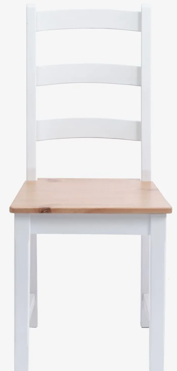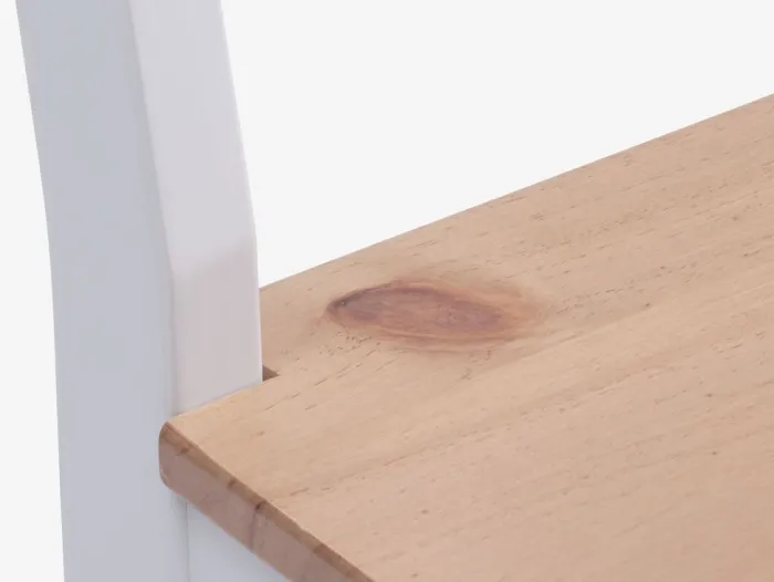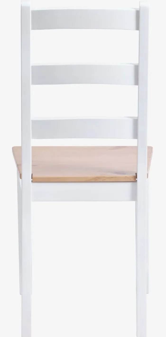 Spisebordsstol med sæde i naturlig massiv fyr og stel i hvid massiv fyr.
