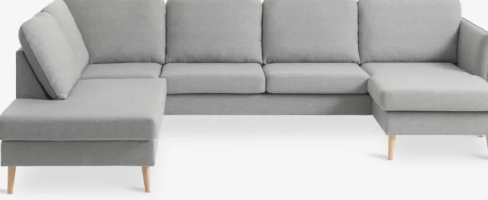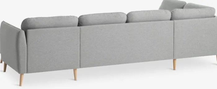 6-personers hjørnesofa i stof. Sæde- og ryghynder i skum. Ben i massiv bøg. Kan ikke spejlvendes. B294 x H82 x D82/137/201 cm