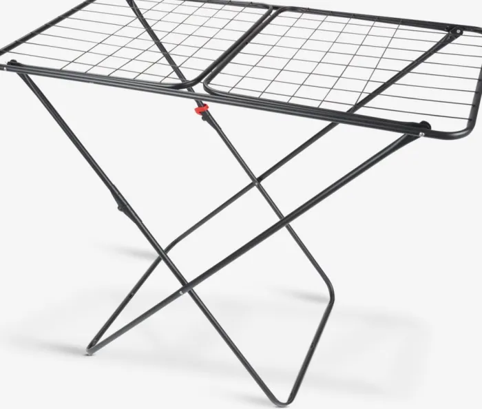 Tørrestativ med 18 meter tørreplads, der kan rumme 1-2 maskinfulde vasketøj. Grå stålramme med vinger, der kan klappes ud og dermed giver plads til længere stykker vasketøj. Dens X-formede ben har en sikkerhedslåsemekanisme for bedre stabilitet. Den smalle bredde gør, at den nemt passer gennem døre. Kan klappes sammen for nem opbevaring. B55 x L171 x H89/99 cm
