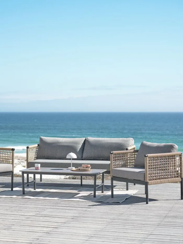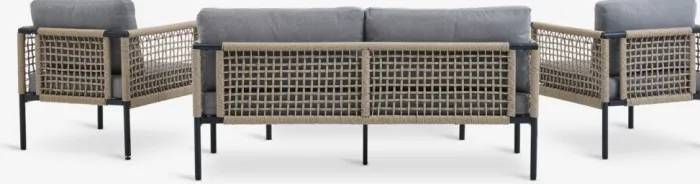 Sofaen og stolene er med polyrattan. Polyrattan er et let, syntetisk flet, der giver et naturligt look, samtidig med at det er vejrbestandigt og vedligeholdelsesfrit.