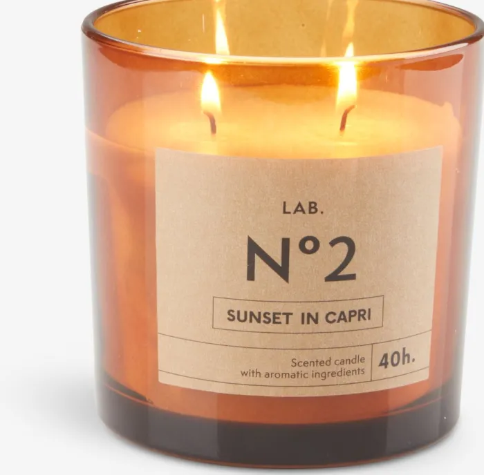 Brunt duftlys med en stilren etiket og en brændetid på cirka 40 timer. Lyset har en behagelig duft, der skaber en afslappende atmosfære i dit hjem. Ø10 x H10 cm