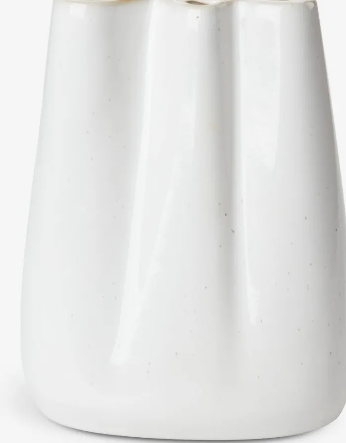 Hvid vase i stentøj med en elegant og moderne form. Vasen har en glat overflade med subtile detaljer, der giver den et sofistikeret udtryk. Perfekt som et dekorativt element i hjemmet eller til at fremvise dine yndlingsblomster. B13 x L8 x H17 cm