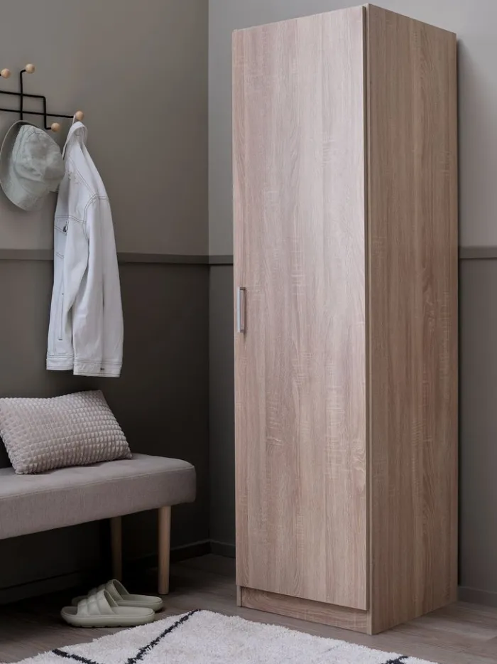 FANDRUP Garderobeskabe Med Skydedøre|Garderobeskabe Med Skydedøre|Garderobeskab 50×176 1 låge lys egefarve Lyseg