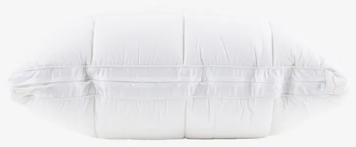 Praktisk 3-i-1 fiberpude 60×63/70 cm, der kombinerer et tykt quiltet bolster med 2 inderpuder, som kan bruges sammen eller hver for sig. Betræk med silikoniseret polyesterfiberfyld, 270 g, og inderpuder med kuglefiberfyld, 425/600 g. Pudens højde og fasthed kan justeres ved at fjerne den ene eller begge puder. Blødt bolster i 100% bomuldscambric. Vask 60°C. Inkl. opbevaringstaske.