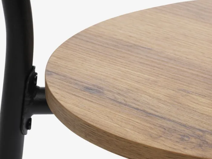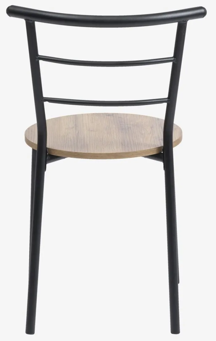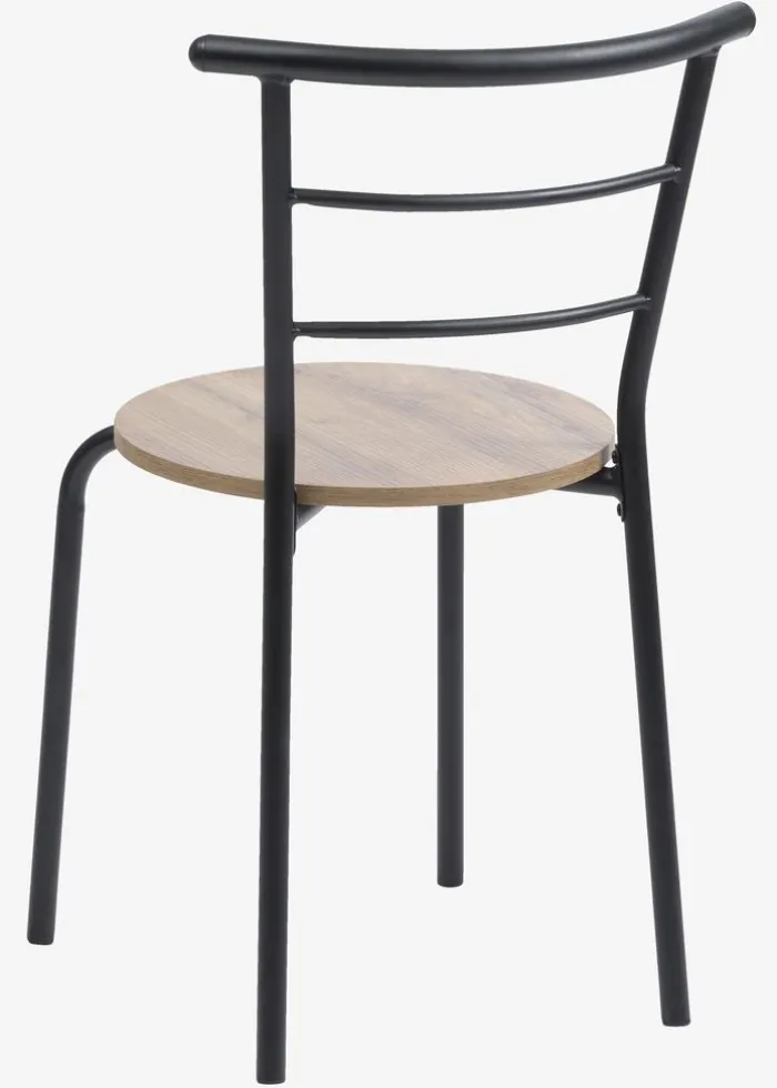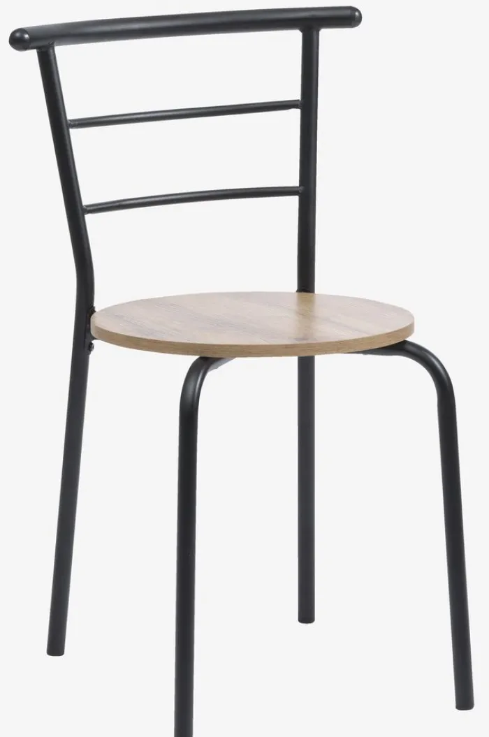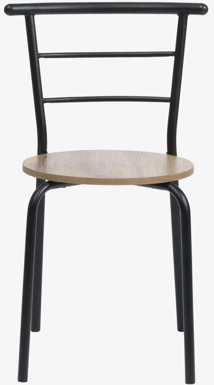 Spisebordsstol med sæde i kunstfiner med egetræslook og sort stel i stål.