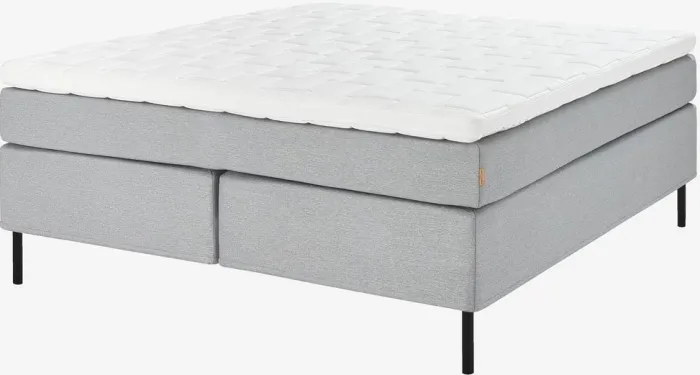 Kontinentalseng 180×200 cm. 2 vendbare springmadrasser med multipocket-fjedre 500/m², polstret med koldskum og purskum. Madrassen er inddelt i 5 komfortzoner, hvilket giver en præcis og optimal støtte. 1 topmadras, 10 cm tyk med kerne af åndbar latex, der effektivt leder overskydende varme væk. Vaskbart strækbetræk med blød, kraftig quiltning. Betrækket indeholder TENCEL邃ør følelse. Basen består af 2 boxmadrasser med pocket-fjedre 250/m², inddelt i 7 komfortzoner. Med sensorstyret orienteringslys under sengen. Inkl. ben. Ekskl. gavl.