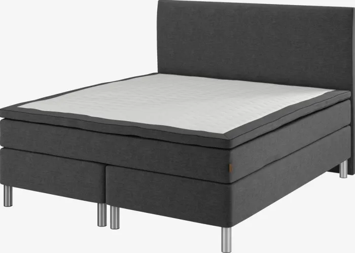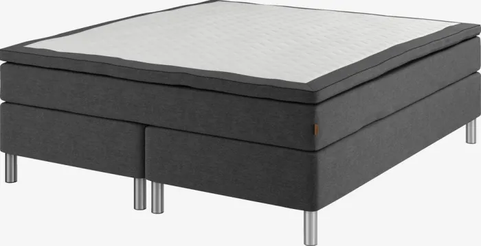 Kontinentalseng 180×200 cm. 1 springmadras med pocket-fjedre 260/m², polstret med koldskum og purskum. Madrassen er inddelt i 7 komfortzoner, hvilket giver en unik, ergonomisk korrekt støtte. 1 topmadras, 7 cm tyk med kerne af åndbar latex, der effektivt leder overskydende varme væk. Strækbetræk med blød, kraftig quiltning. Basen består af 2 boxmadrasser med bonell-fjedre 110/m². Inkl. ben. Ekskl. gavl.
