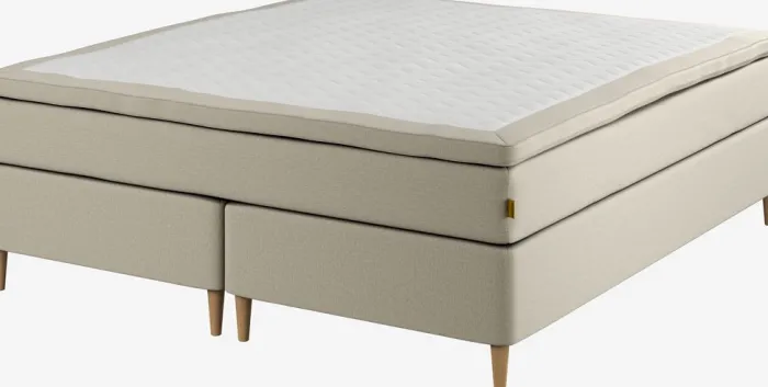 Kontinentalseng 180×200 cm. 1 vendbar springmadras med adaptive pocket-fjedre 204/m², polstret med fleksibelt Comfort+ skum. Adaptive pocket-fjedre tilpasser gradvist fastheden og støtten til dine skiftende sovepositioner. Madrassen er inddelt i 7 komfortzoner, hvilket giver en unik, ergonomisk korrekt støtte. 1 topmadras, 7 cm tyk med kerne af trykaflastende memory foam, der former sig præcist efter kroppen. Betræk med blød, kraftig quiltning. Basen består af 2 boxmadrasser med pocket-fjedre 250/m², inddelt i 5 komfortzoner. Inkl. ben. Ekskl. gavl.