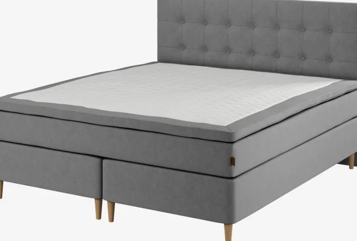 Kontinentalseng 180×200 cm. 1 vendbar springmadras med adaptive pocketfjedre 204/m², polstret med fleksibelt Comfort+ skum. Adaptive pocket-fjedre tilpasser gradvist fastheden og støtten til dine skiftende sovepositioner. Madrassen er inddelt i 7 komfortzoner, hvilket giver en unik, ergonomisk korrekt støtte. 1 topmadras, 7 cm tyk med kerne af åndbar latex, der effektivt leder overskydende varme væk. Strækbetræk med blød, kraftig quiltning. Basen består af 2 boxmadrasser med pocketfjedre 250/m², inddelt i 5 komfortzoner. Inkl. ben. Ekskl. gavl.