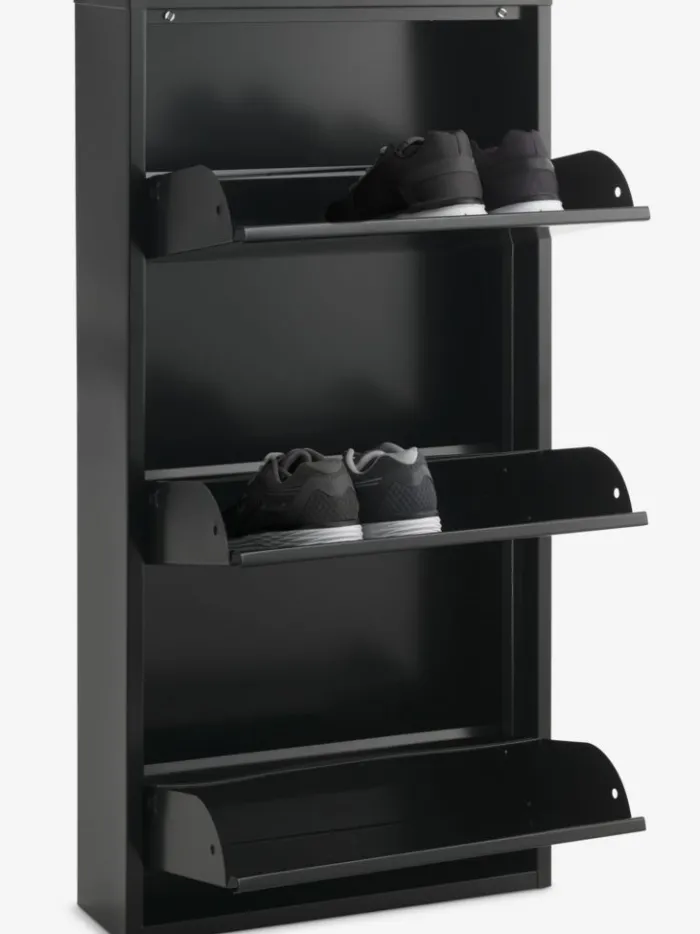 HALLENSLEV Skoopbevaring|Skoskab 3 rum Sort