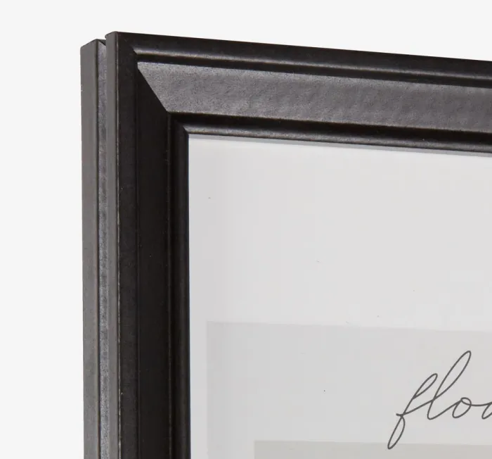 Sort billedramme 21×30 cm i MDF med letvægts plastikfront. Den profilerede kant giver billedrammen et traditionelt udtryk. Passer til plakater og billeder i A4 størrelse.