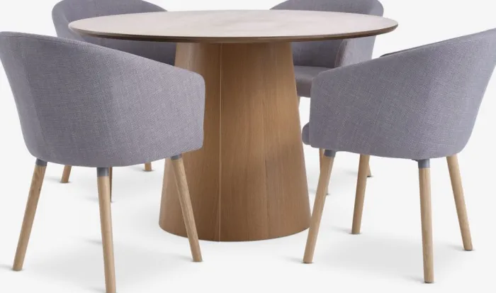 KLIPLEV + KLOSTER Spisebordssæt|KLIPLEV Ø120 bord eg + 4 KLOSTER lysegrå/eg