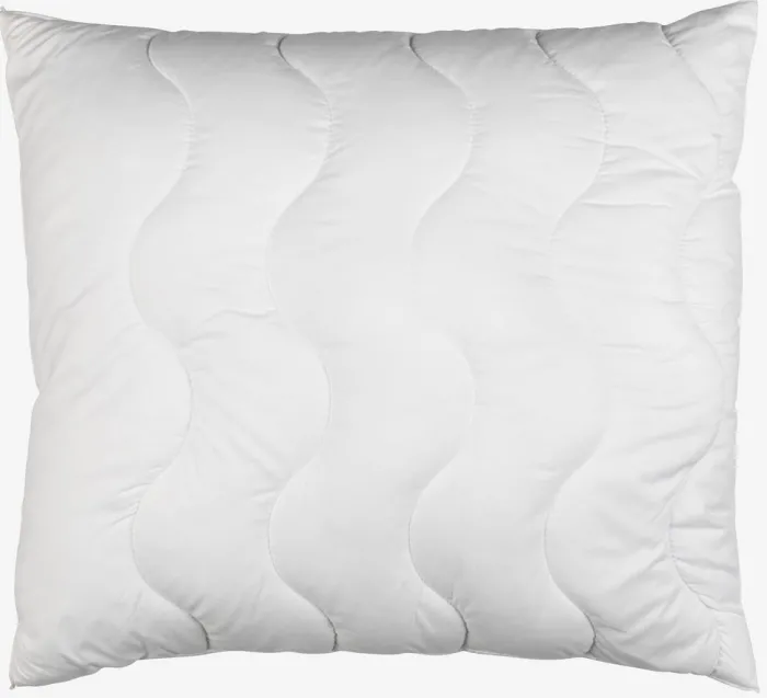 Fiberpude 60×63/70 cm med fyld af 75% blandede fibre og stof/25% silikoniserede spiralformede hulfibre, 830 g. Blødt bolster i 100% polyestermikrofiber. Quiltet med polyesterfibre. Vask 60°C.