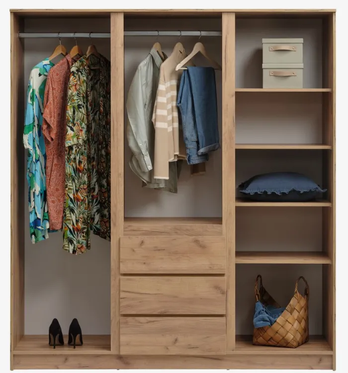 LIMFJORDEN Garderobeskabe Med Skydedøre|Garderobeskabe Med Skydedøre|Garderobeskab 180×200 kombi naturlig efarve Eg
