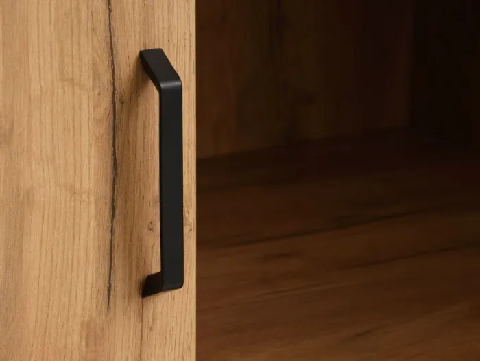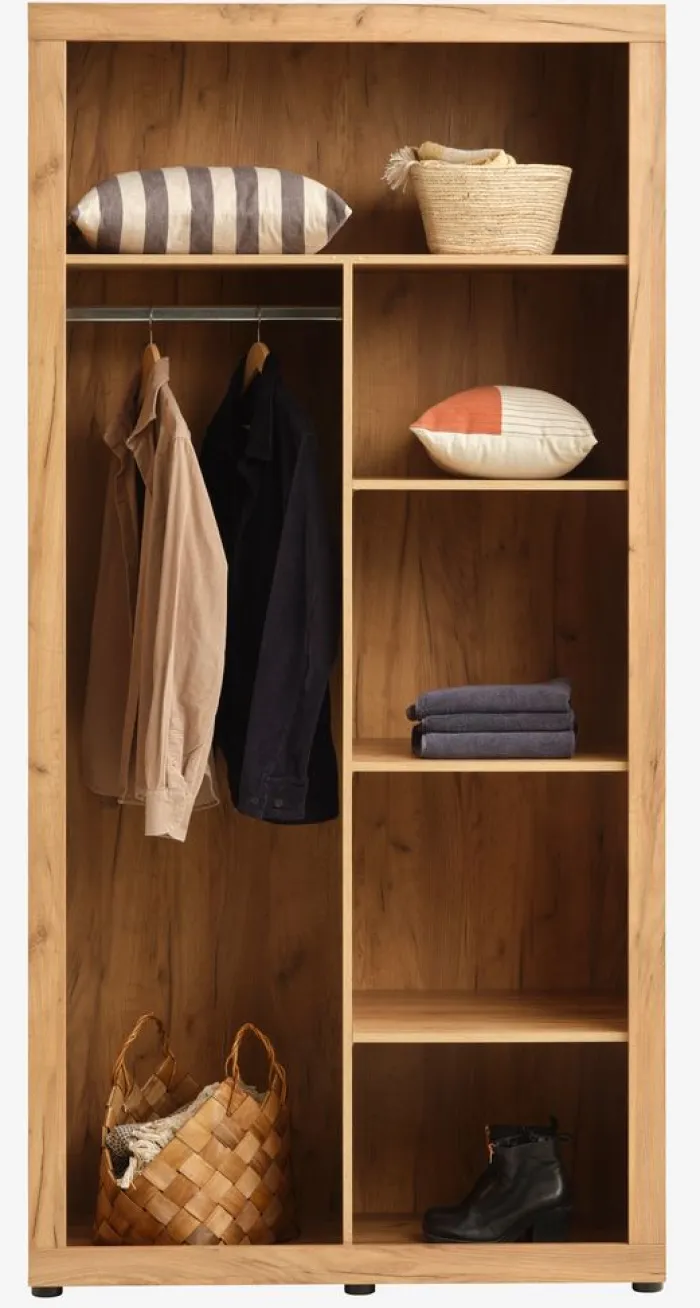 Kunstfiner. Skabets indretning: 4 hylder og 1 bøjlestang. B109 x H220 x D61 cm