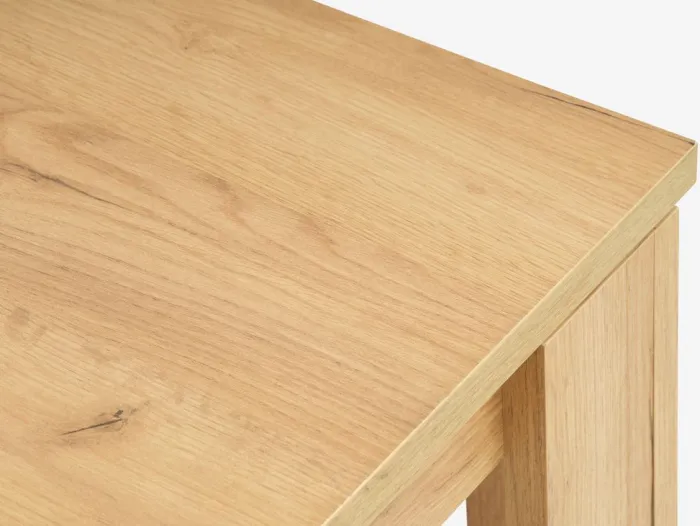 Spisebord med udtræk. Inklusiv 2 tillægsplader, som kan opbevares under bordpladen. Spisebordet er lavet af kunstfiner med egetræslook. Du kan nemt forlænge bordet til enten 235 eller 280 cm for at rumme større sammenkomster. B90 x L190 x H77 cm