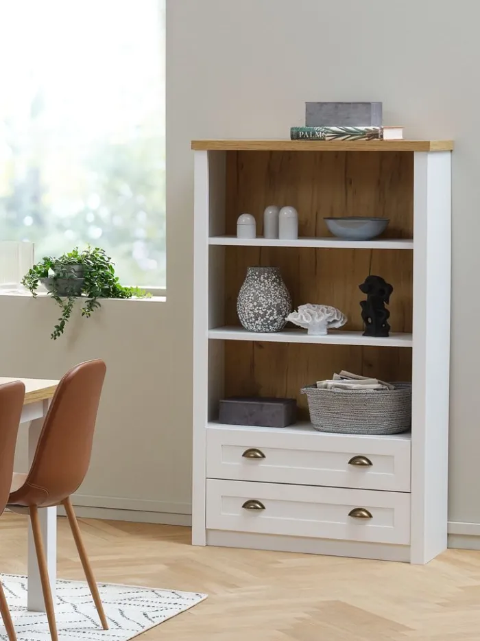 MARKSKEL Reoler Og Rumdelere|Reoler Og Rumdelere|Bogreol 2 skuffer hvid/egefarve