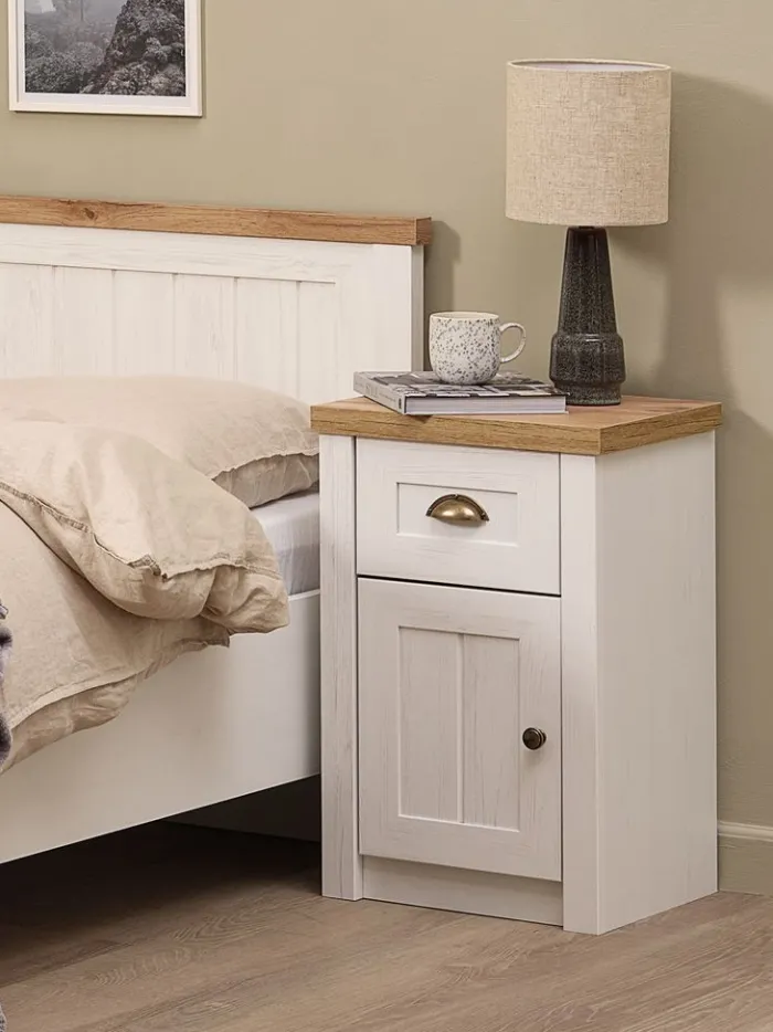 MARKSKEL Sengeborde|Sengeborde|Sengebord 1 skuffe hvid/egefarve