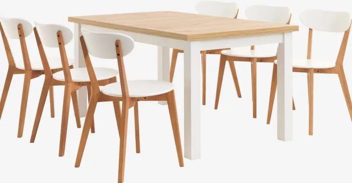 MARKSKEL Spiseborde|Spisebord 90×150/193 hvid/egefarve Hvid+Eg
