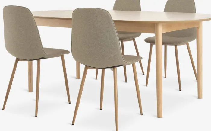 MARSTRAND + BISTRUP Spisebordssæt|MARSTRAND L200 bord eg + 4 BISTRUP stole sand