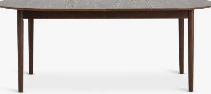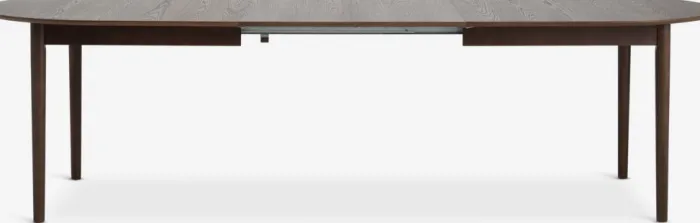 Spisebord med udtræk. Inklusiv 2 tillægsplader, som kan opbevares under bordpladen. Det ovale spisebord har en bordplade i mørk egefiner og matchende ben i massivt træ. Træet er lakeret for at forlænge holdbarheden. Du kan nemt forlænge bordet til enten 240 eller 280 cm for at rumme større sammenkomster. B100 x L200 x H75 cm