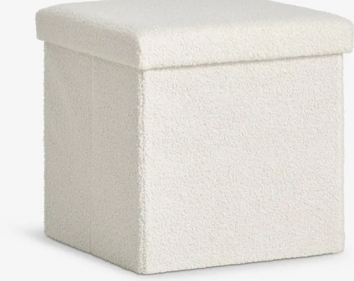 NYSTED Puffer|Puffer|Puf 38×38 m/opbevaringsplads råhvid teddy
