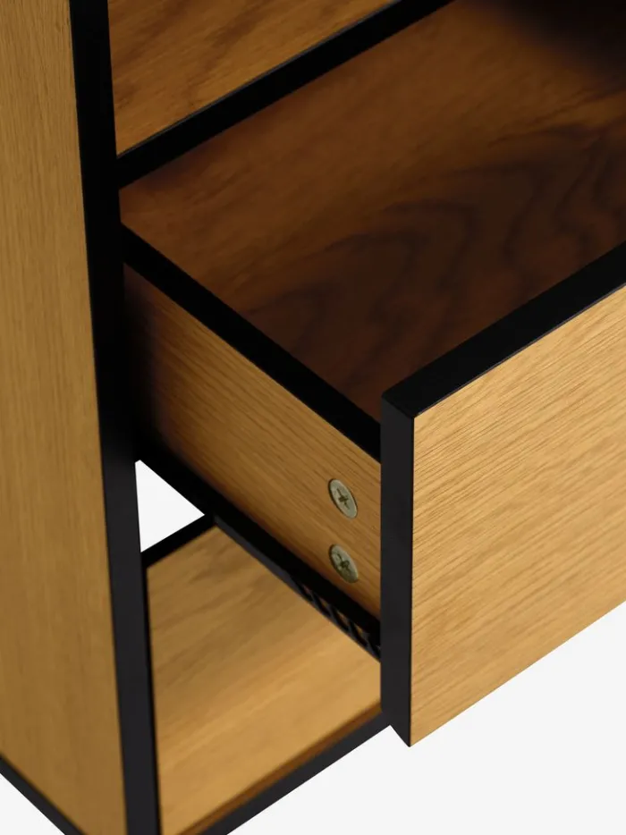 HEMDRUP Sengeborde|Sengeborde|Sengebord 1 skuffe egefarve/sort