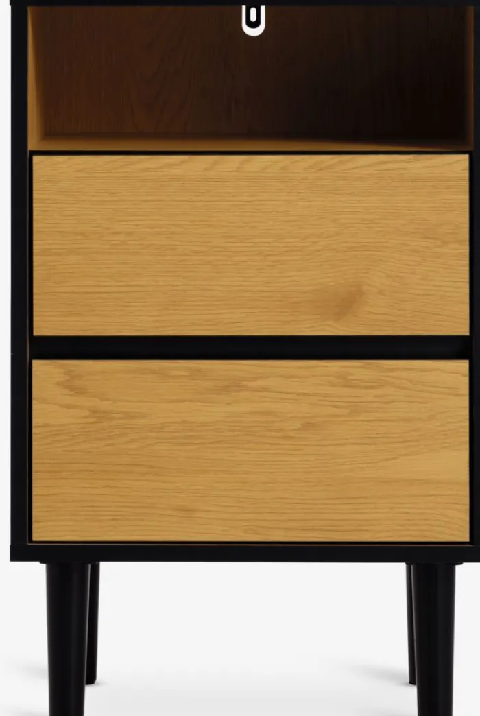 ODENSE Sengeborde|Sengeborde|Sengebord 2 skuffer egefarve/sort