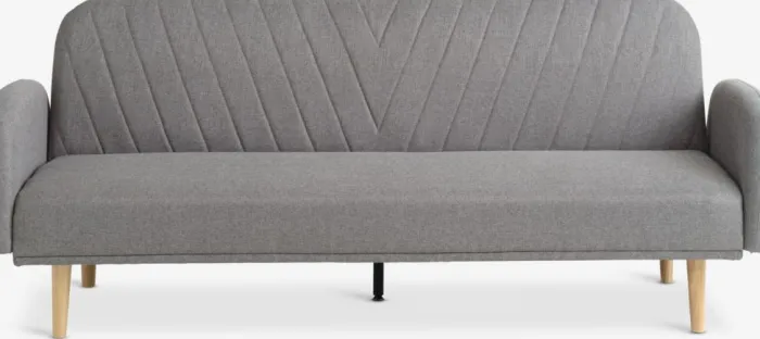 3-personers sofa i stof. Sofaen kan nemt laves om til en seng. Sæde- og ryghynder i skum. Ben i massivt træ. Udslået liggemål 106×190 cm. B209 x H82 x D83 cm