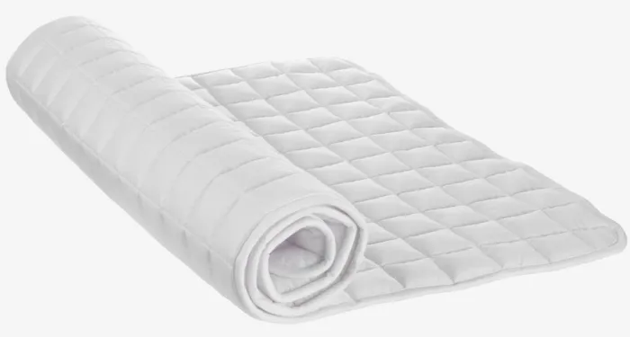 Kogeægte baby rullemadras 60×120 cm med blød, kraftig quiltning af silikoniserede hul-fibre (100% genanvendt).