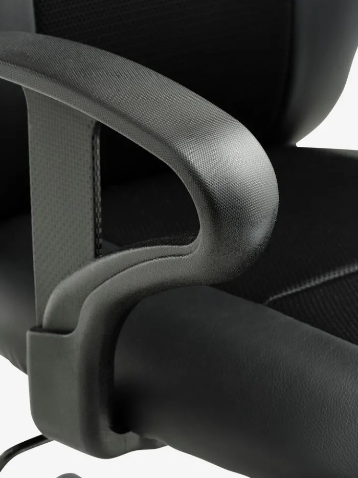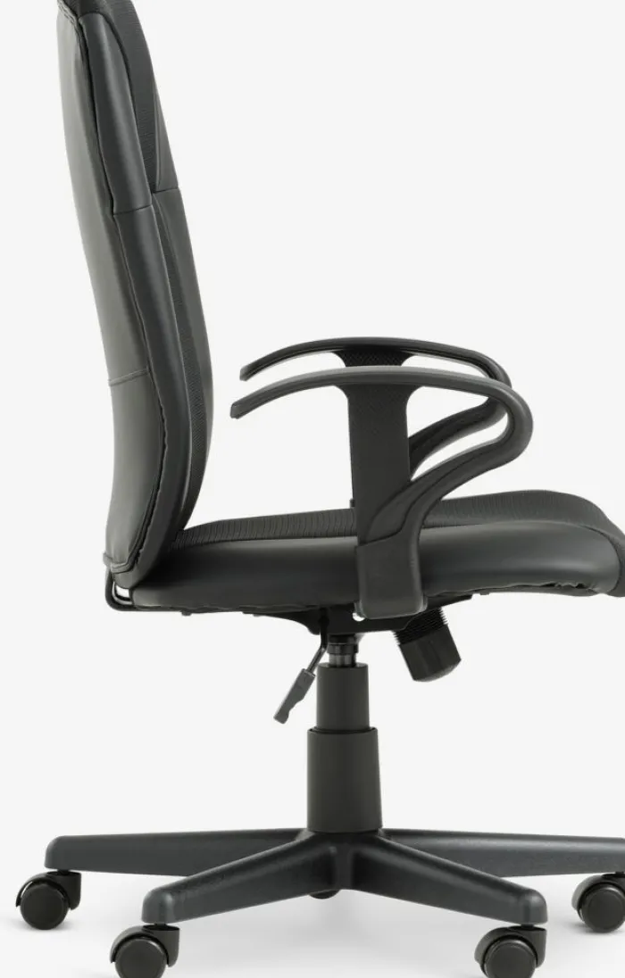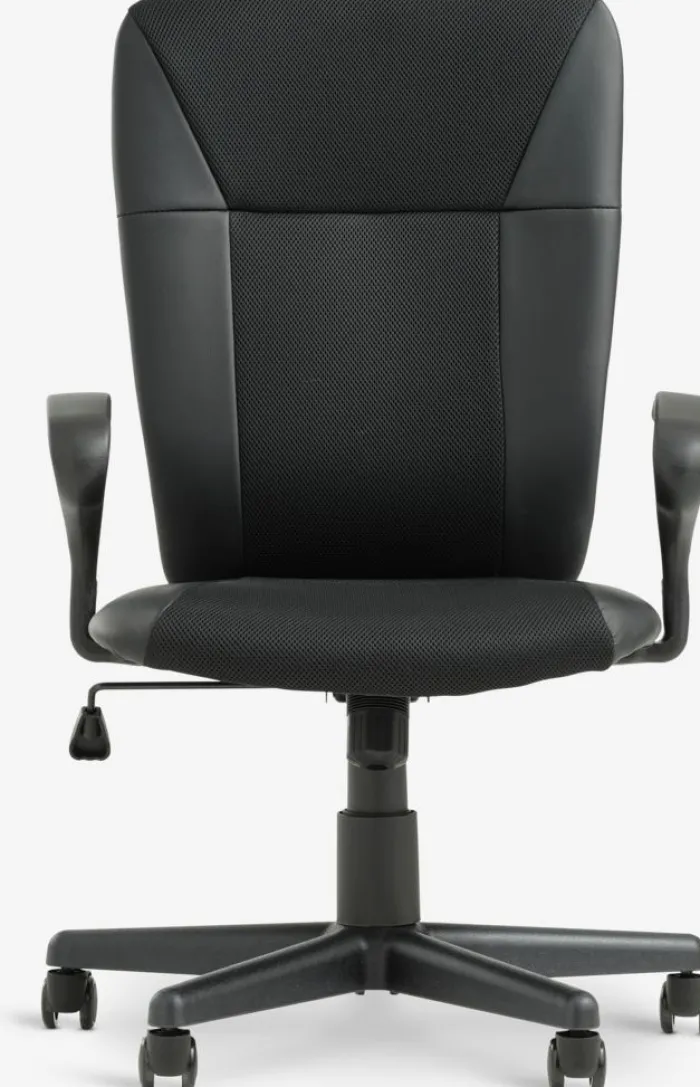 Kunstlæder og mesh. Med justerbar højde og trinløs vippefunktion. B62 x H95-105 x D59 cm