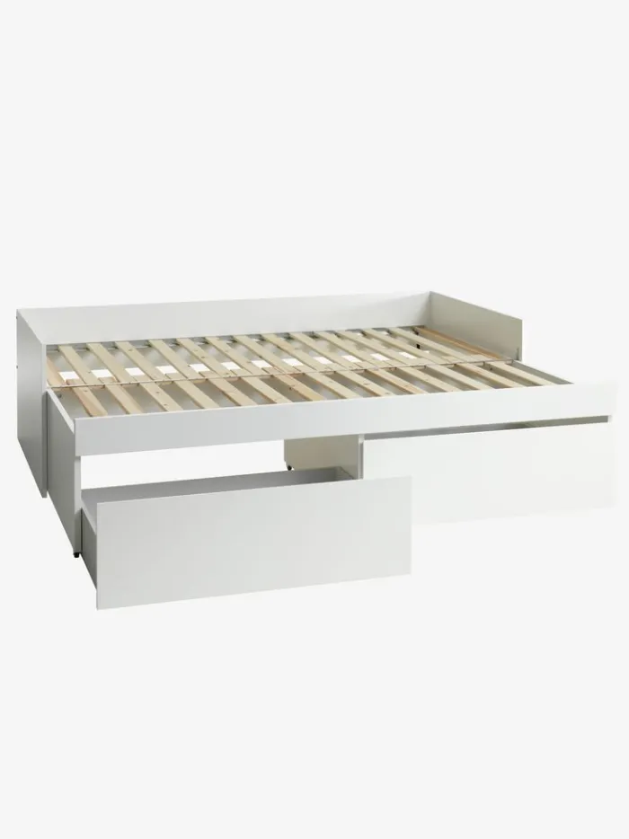 Kunstfiner. Med udtræk, som nemt kan laves om til en ekstra soveplads. Med opbevaringsplads. Passer til spring- og skummadrasser 90×200 cm. Inkl. sengelameller. Ekskl. madrasser. B99 x L206 x H60 cm**