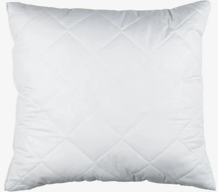 Fiberpude 60×63/70 cm med boxkant, som giver puden mulighed for at genvinde sin form og give jævn støtte. Let, luftigt fyld af silikoniserede, spiralformede hulfibre, 1300 g. Blødt bolster i 100% mikrofiber. Quiltet med hulfibre. Vask 60°C.