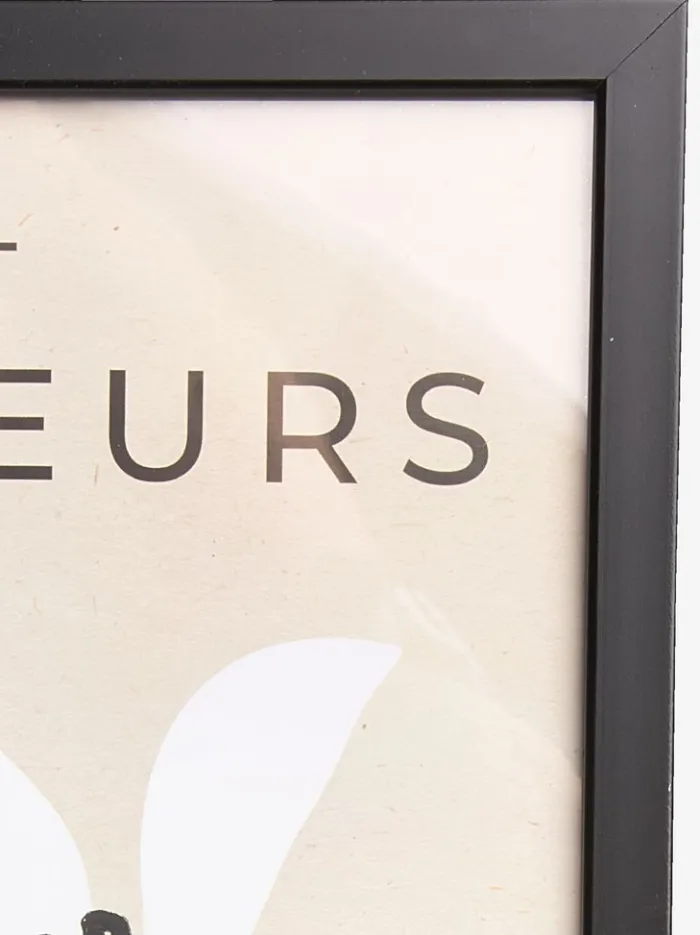 Sort billedramme 21×30 cm i MDF med letvægts plastikfront. Passer til plakater og billeder i A4 størrelse. Med fod.