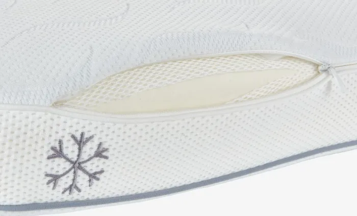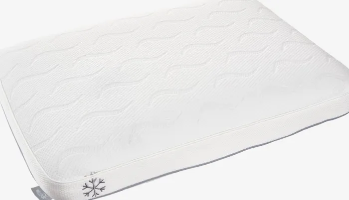 Memory foam pude 40x60x13 cm i trykaflastende AIR memory foam. AIR memory foam former sig hurtigt og præcist efter nakke og skuldre, selv i et køligt sovemiljø. Pudens ene side har et lag af kølende gel, som giver dig mulighed for at skifte mellem en almindelig og en køligere side. Betræk i polyester, med kølende polyethylen på den ene side, som kan vaskes ved 40°C.