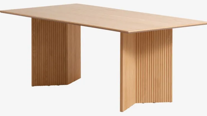 Spisebord med bordplade i egefiner og ben i massiv eg og egefiner. Træet er behandlet med klar lak for at forlænge holdbarheden. B100 x L200 x H75 cm